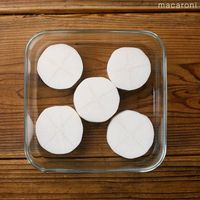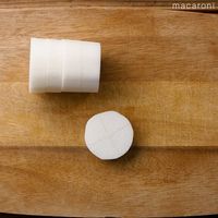 大根は皮をむき、1cm幅の輪切りにし、十字に切り込みを入れます。