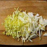 白菜の芯をつけたまま5mm幅の細切りにします。