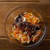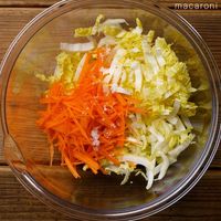ボウルに白菜、にんじん、塩を入れて塩揉みします。