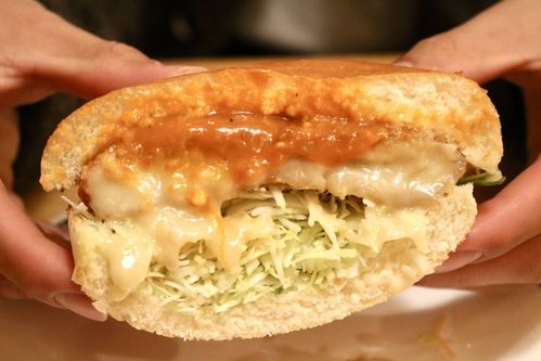 たっぷりのホワイトソース、海老の香りが効いたトマトソース、キャベツのバランスが絶妙で、ひと口で笑みがこぼれてしまうようなリッチな味わい。