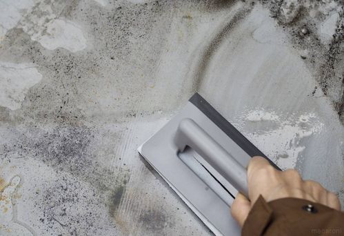 黒ずみや汚れが特に気になる部分には重曹をスプレーし、「玄関・ベランダの凹凸面クリーナー」で重点的にこすります。隅や壁際なども力を入れて掃除しやすく、汚れ残りを防げますよ。