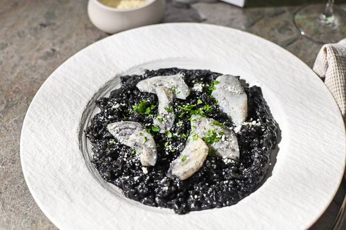 伝統的なスペイン料理と日本料理を掛け合わせ、豊かな味わいを表現する世界が認めた星付きレストラン「ZURRIOLA(スリオラ)」の「海の恵みのイカ墨リゾット」。