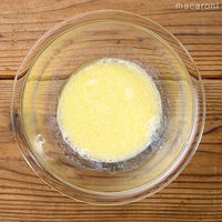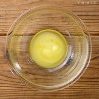 耐熱ボウルにバターを入れ、レンジ600Wで40秒加熱して溶かします。