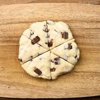 台の上に取り出し、厚さ1.5cmほどの円形に整えたら6等分に切ります。