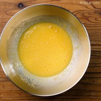 ボウルに卵を割り入れて溶きほぐし、グラニュー糖、はちみつを加えて混ぜます。