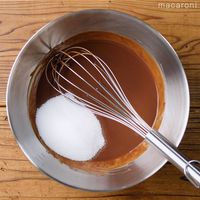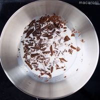 耐熱ボウルにチョコレート、牛乳を入れ、湯せんで溶かします。