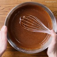 クッキングシートを敷いた型に流し入れ、170℃に予熱したオーブンで30〜35分焼きます。