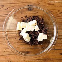 ボウルにチョコレート、バターを入れ、レンジ600Wで40〜50秒加熱します。