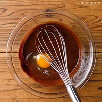 卵をひとつずつ加え、その都度よく混ぜ合わせます。