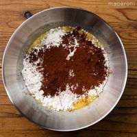 ホットケーキミックス、ココアパウダーを加え、ゴムベラで切るように混ぜます。