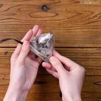 袋を縦にし、テトラ型に形を整えます。