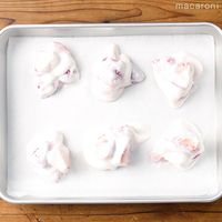 天板にクッキングシートを敷いて、6等分に分けて冷凍庫で固まるまで2時間以上冷やします。