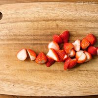 いちごは縦半分に切ります。