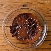 チョコレートを耐熱ボウルに入れてレンジ600Wで1分加熱し、混ぜ合わせます。