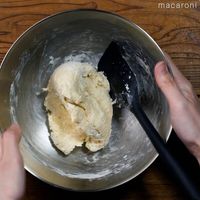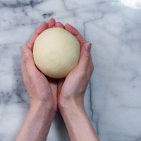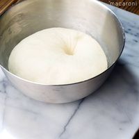 生地がまとまってなめらかになってきたら、丸めて閉じ目を下にしてボウルに入れます。