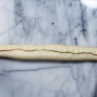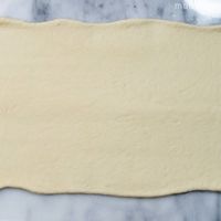 打ち粉をした台に出し、めん棒で30×20cmの長方形になるように伸ばします。