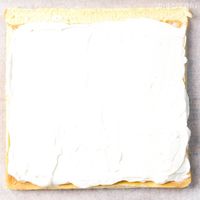 焼きあがったらケーキクーラーにのせ、側面の立ち上がり部分のクッキングシートを外します。乾燥しないようクッキングシートまたはラップをのせて冷まします。