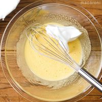 卵黄を混ぜたボウルにメレンゲの1/3量を加え、混ぜます。