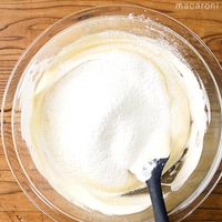 グラニュー糖を3回に分けて加え、その都度ハンドミキサーで混ぜます。