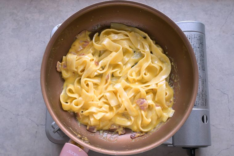 市販のほうとうをパスタ代わりに!? 絶品カルボナーラ