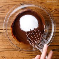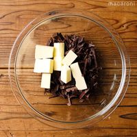 ボウルにチョコレート、バターを入れ、レンジ600Wで40〜50秒加熱します。