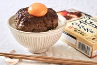おすすめは、卵黄トッピング。パッケージのようにハンバーグに卵黄をのせれば、まろやかさが加わり、さらに濃厚で満足感のある味を楽しめますよ。
