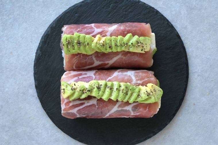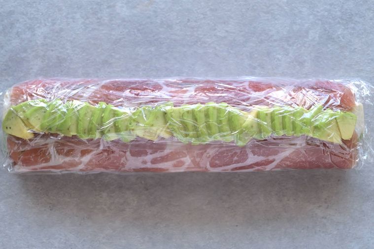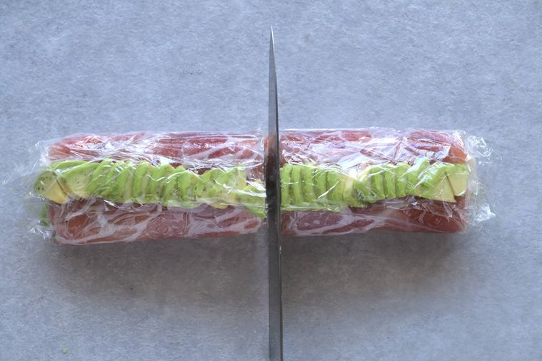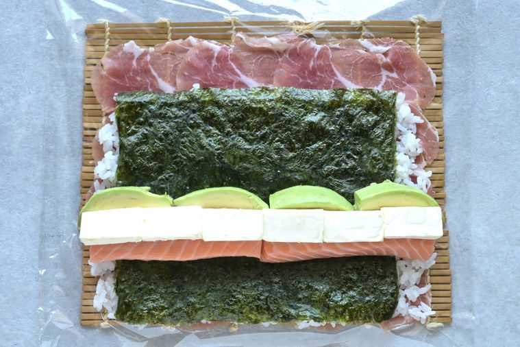 ご紹介するのは、とろけるような口当たりのサーモン・アボカド・クリームチーズを具材にした「洋風生ハムロール寿司」です。