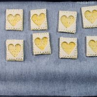 ハート型にくり抜いた生地を重ね、周りをフォークで押さえつけます。