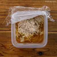 玉ねぎ、ひき肉を加えてふんわりとラップをかけ、レンジ600Wで2分加熱します。