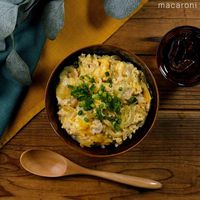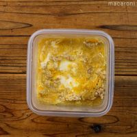 取り出したら溶き卵を加え、ラップをかけずにレンジ600Wで40〜50秒加熱します。