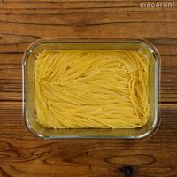 スパゲッティを半分に折って加え、ふんわりとラップをかけ、レンジ600Wで表記のゆで時間+1分加熱します。