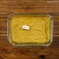 取り出したらバターを加え、スパゲッティをほぐすようによく混ぜます。
