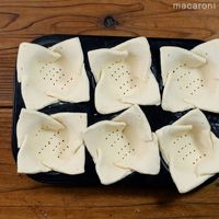 マフィン型に切目を少しずつ重ねながら敷きこみます。
