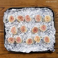 アルミホイルを敷いた天板に並べ、断面にオリーブオイルを塗ってブラックペッパーを振ります。