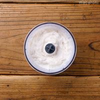 [A]の卵白、塩を加えて攪拌したら、生クリームを加えて混ぜます。