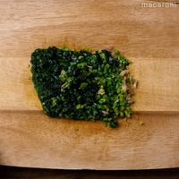 ほうれん草を包丁で細かく切ります。