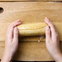 サーモン、アボカド、クリームチーズをのせて巻き上げます。