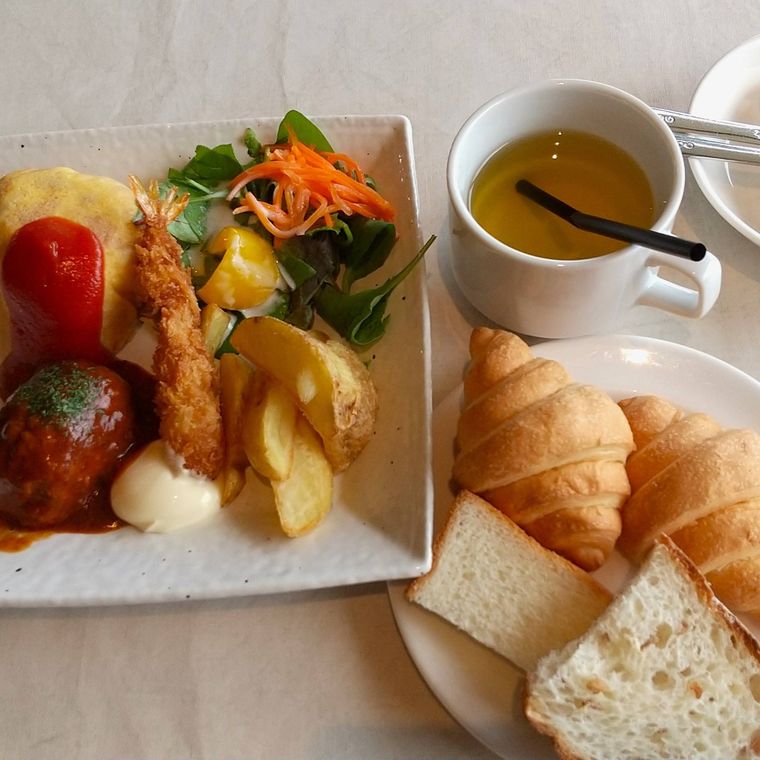 ピザやハンバーガーなどの定番メニューが、このカフェならではの仕様で提供されます。