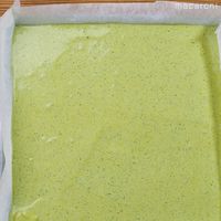クッキングシートを敷いた型に流し入れ、四隅に広げて平らにならします。