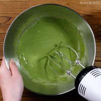 ペースト状になって抹茶が溶けたら残りの生クリームを加え、ハンドミキサーで八分立てにします。
