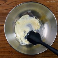 ボウルにバターを入れ、なめらかになるまでゴムベラで混ぜます。