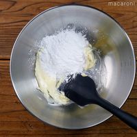 粉砂糖を加えて白っぽくなるまですり混ぜます。