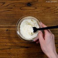 ボウルにクリームチーズ、マヨネーズを入れ、混ぜ合わせます。