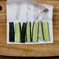 きゅうりは薄切りにしてキッチンペーパーで水気を拭き取ります。