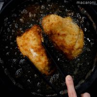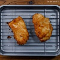 チキンカツを取り出し、油を切ります。