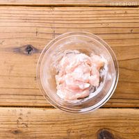 ・鶏肉をひと口大のそぎ切りにします。