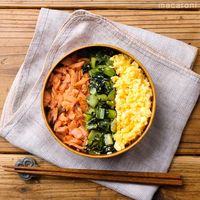 弁当箱にごはんを入れてそれぞれを盛り付けたら完成です。