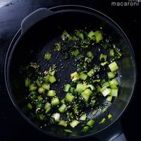 中火にかけ、5分ほど混ぜながら水分を飛ばします。