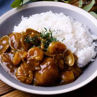 えびとあさりを戻し入れてひと煮立ちさせます。ごはんと一緒に器に盛って完成です。