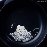 サラダ油半量、にんにくを入れて香りが立つまで炒めます。